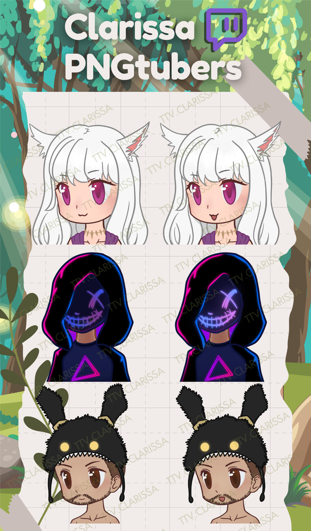 These can be used as PNGtubers for streaming, or for profile pictures on Discord or any website!